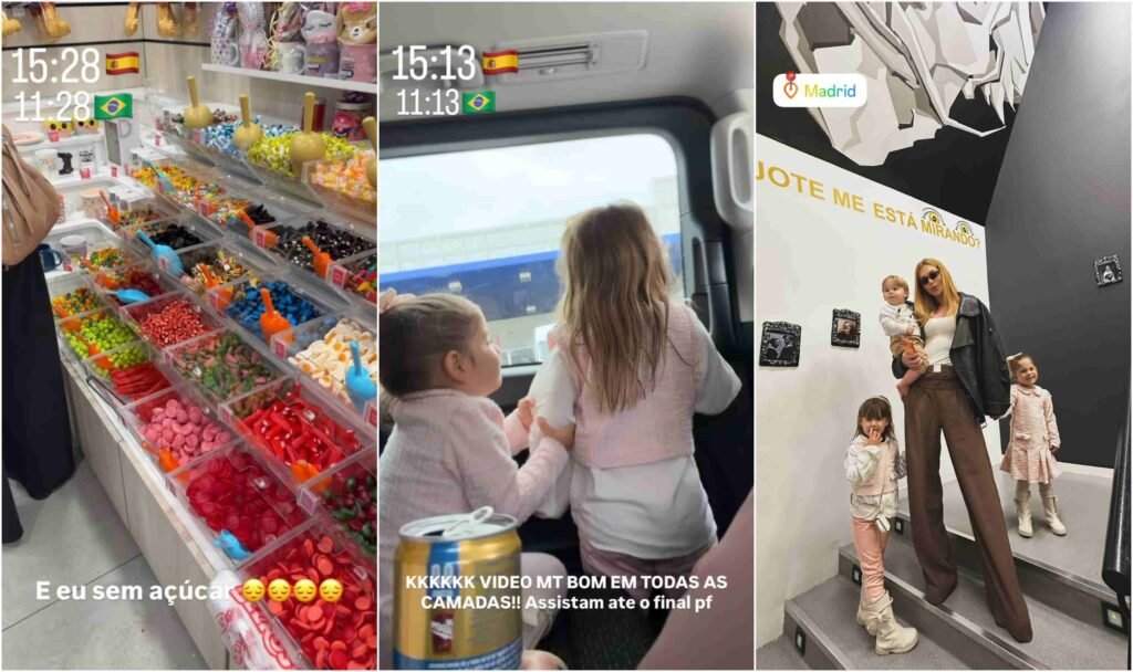A influenciadora usou as redes sociais, nesta quinta-feira, 31, para compartilhar registros do passeio em família pelas ruas e vários pontos que visitou, incluindo uma lojinha de guloseimas. “Bom dia, bom dia, bom dia! Quem está feliz? Levanta a mão”, disse ela em um vídeo nos Stories do Instagram, enquanto os filhos apareciam ao seu lado.