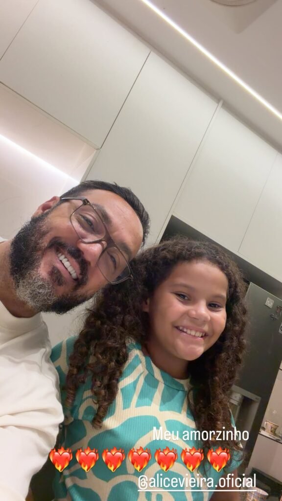 A pequena tem 9 anos e é filha de Ingrid Vieira, uma das herdeiras do cantor. Além da jovem, Belo também é pai de Paulo Arthur, Paula Cristina e Isadora Vieira, frutos de relacionamentos antigos do ator, e avô de outras três crianças.