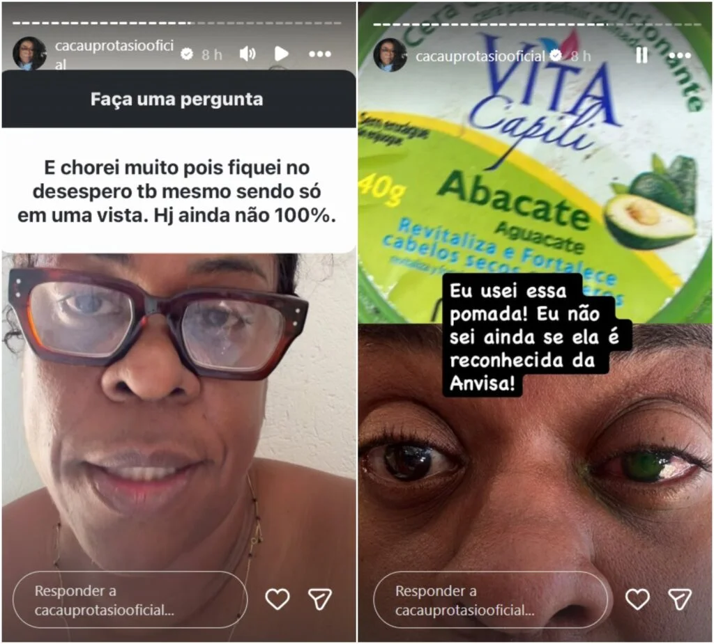 +Cacau Protásio sofre perda de visão causada por pomada capilar: ‘Dor insuportável’