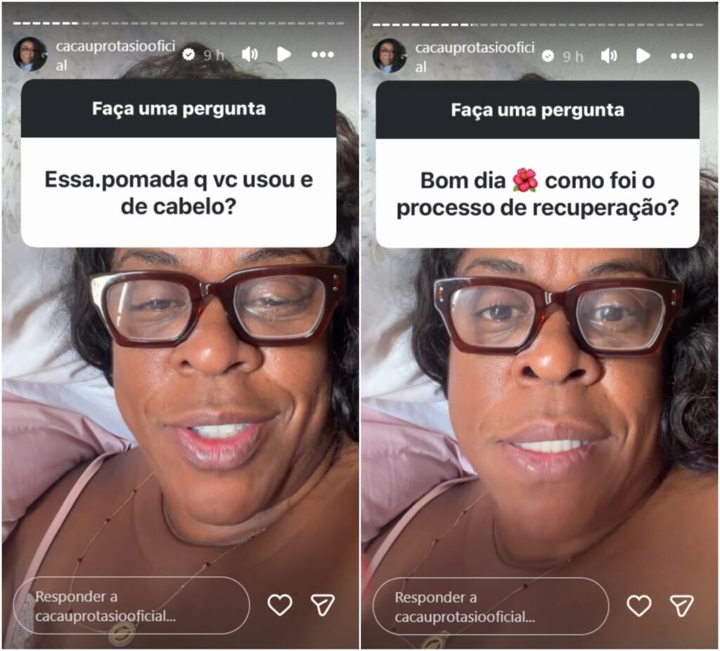 A atriz Cacau Protásio, 50 anos, afirmou que voltou a enxergar após sofrer um episódio de cegueira temporária causado pelo uso de uma pomada capilar. A atualização foi feita por meio das redes sociais, onde ela também relatou o processo de recuperação.