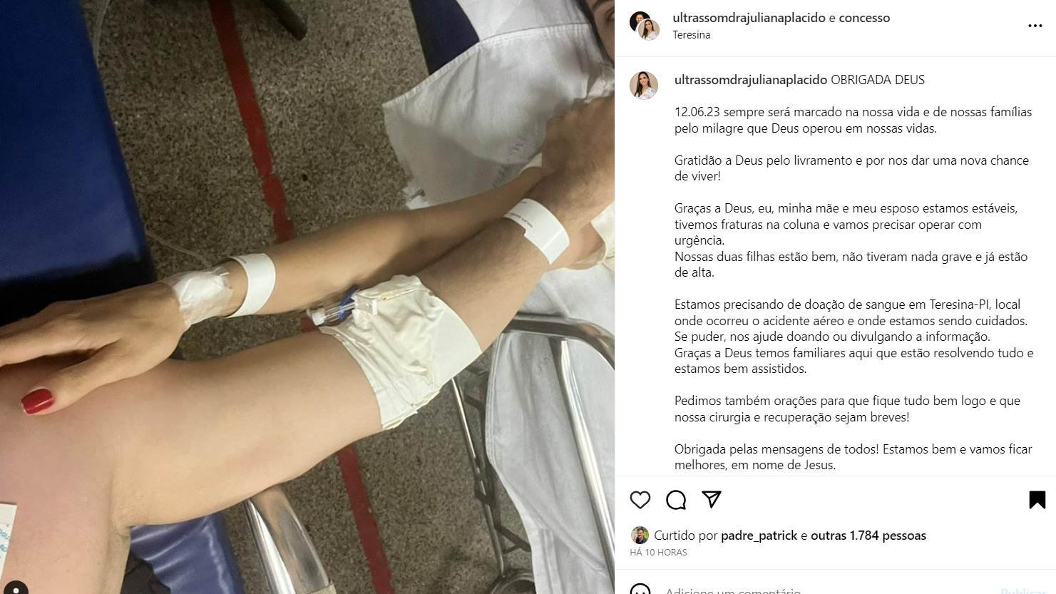 O advogado especialista em planejamento patrimonial Arcedino Concesso Filho, a esposa, Juliana Plácido, as filhas Giovanna Plácido, de 16 anos, e N.C. Plácido, de cinco, e a sogra, Maria Gracy, estavam em um avião de pequeno porte que caiu na segunda-feira, 12, em um campo de futebol na Vila Operária, zona norte de Teresina (PI).