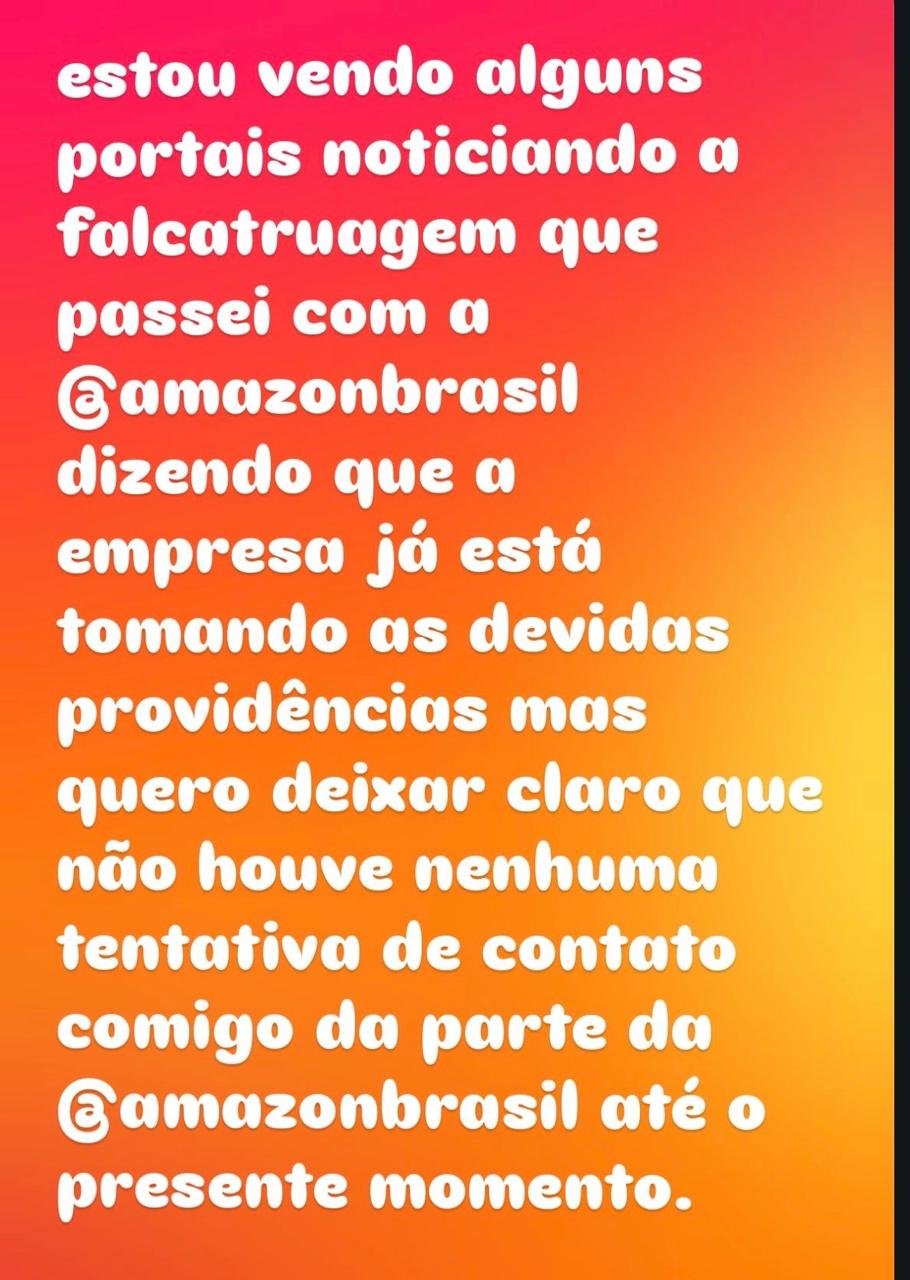 “Estou vendo alguns portais noticiando a falcatruagem que passei com a Amazon Brasil, dizendo que a empresa já está tomando as devidas providências, mas quero deixar claro que não houve nenhuma tentativa de contato comigo da parte da Amazon Brasil até o presente momento”, publicou ele, na noite de sexta-feira.