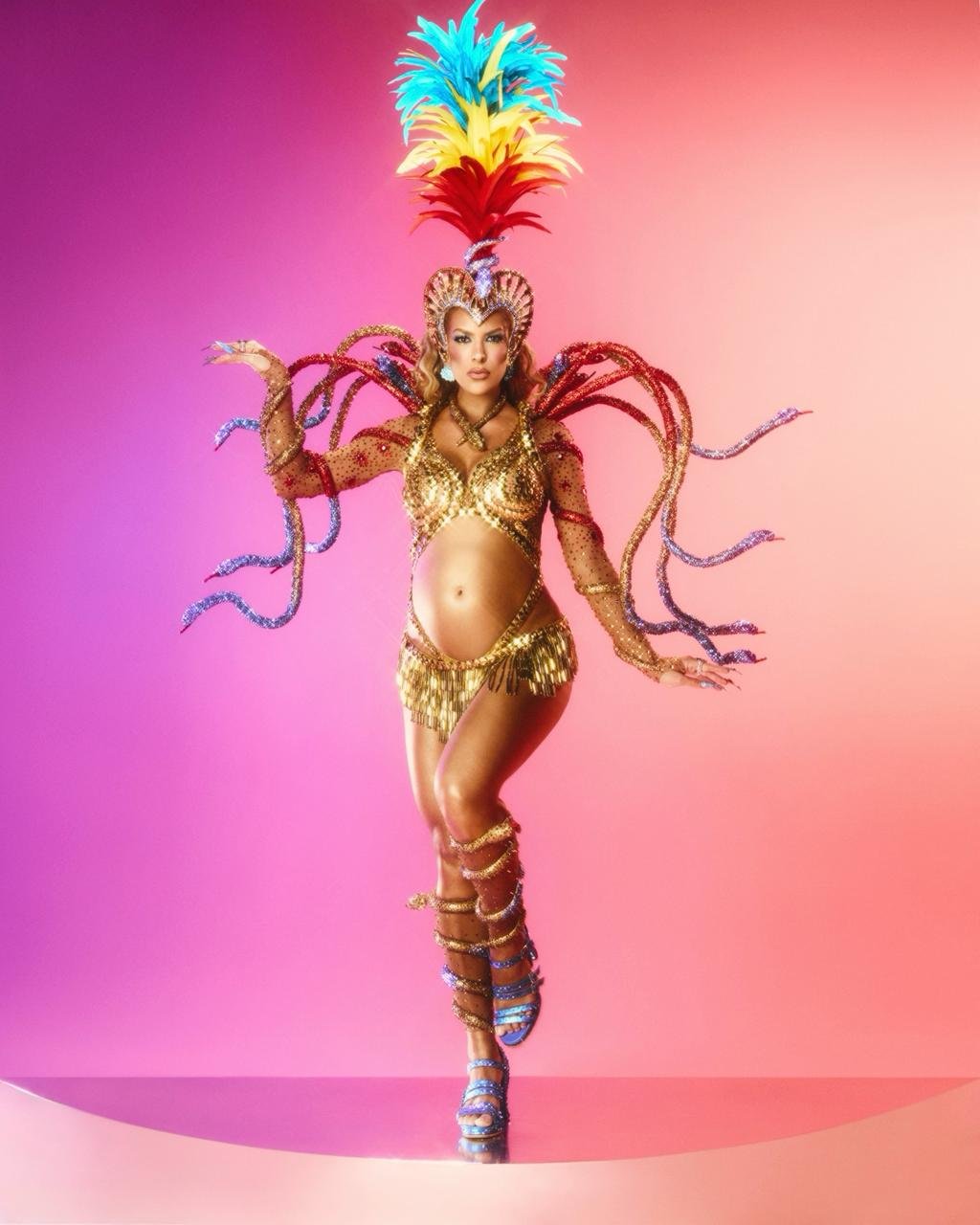Já Lore Improta chegou à avenida para atravessar a Sapucaí com a Viradouro, desta vez vivendo a emoção de desfilar grávida. O momento marca uma fase especial na trajetória da artista, que une a experiência de anos no Carnaval a celebração da maternidade. Lore representou a serpente Dangbé, símbolo de um ano que a Viradouro levou muito da Bahia pra Avenida e foi conduzido com maestria pelo Mestre Ciça, homenageado este ano pela escola.