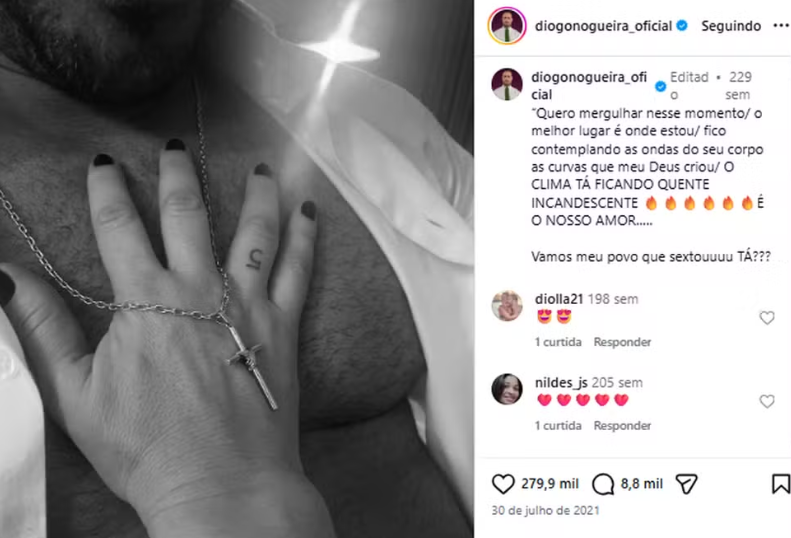Primeira postagem de Diogo Nogueira confirmando romance com Paolla Oliveira, em 2021 – Reprodução/Instagram