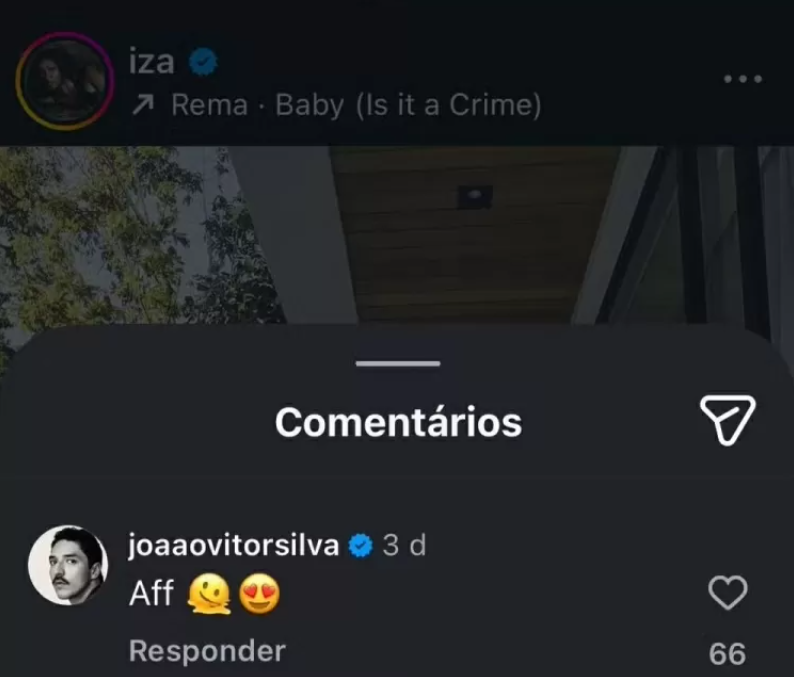 O suposto envolvimento amoroso entre IZA, 35 anos, e João Vitor Silva, 29, ganhou novas evidências. Solteira desde outubro, a cantora recebeu um elogio do ator do filme “O Agente Secreto”, com quem estaria vivendo um affair. Em uma publicação da artista, João comentou apenas “Aff”, acompanhado de emojis apaixonados.