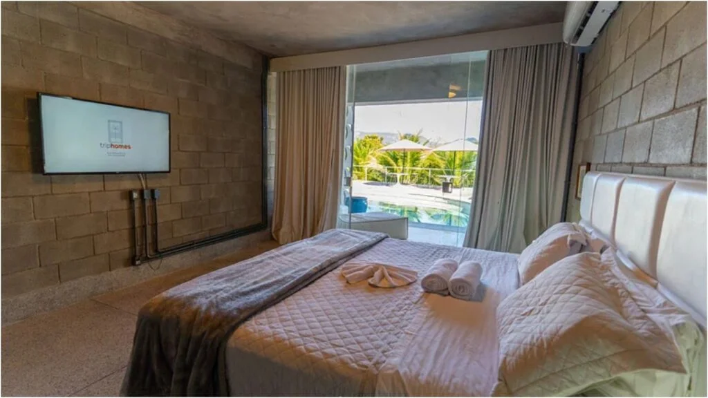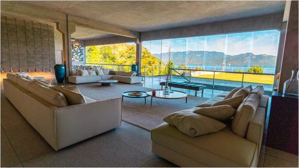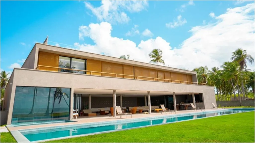 A mansão de Angra conta com sete suítes, área de lazer completa, piscina, sauna e vista para o mar. Já a de Alagoas tem dez suítes, projeto assinado pelo arquiteto Rodrigo Fagá, com piscina de frente para o mar e rooftop panorâmico.