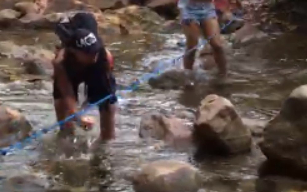 Jovens em cachoeira antes do acidente (Reprodução TV Anhanguera)