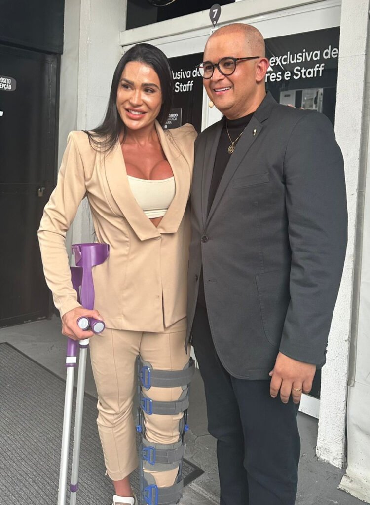 Gracyanne Barbosa foi um dos destaques do evento “O Poder do Network”, realizado neste final de semana no Rio de Janeiro. Mesmo de muletas, a influenciadora fez questão de comparecer e acompanhar a programação comandada pelo empresário Bruno Avelar.