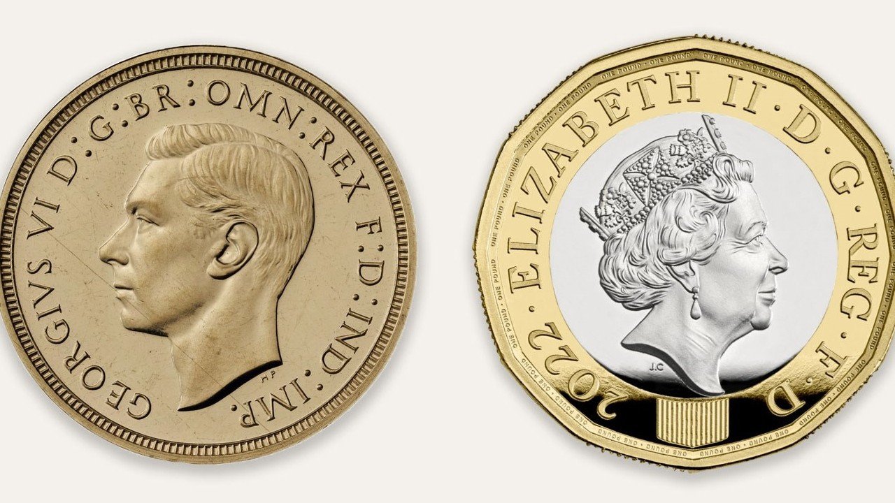 Efígie do Rei George VI virado para esquerda, enquanto da rainha Elizabeth II está para direita