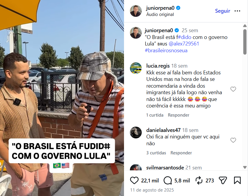 O influenciador brasileiro Junior Pena foi preso pelo Serviço de Imigração e Alfândega dos Estados Unidos, o ICE, em 31 de janeiro. Pena era bastante ativo nas redes sociais, onde se declarava um apoiador do presidente americano, Donald Trump.