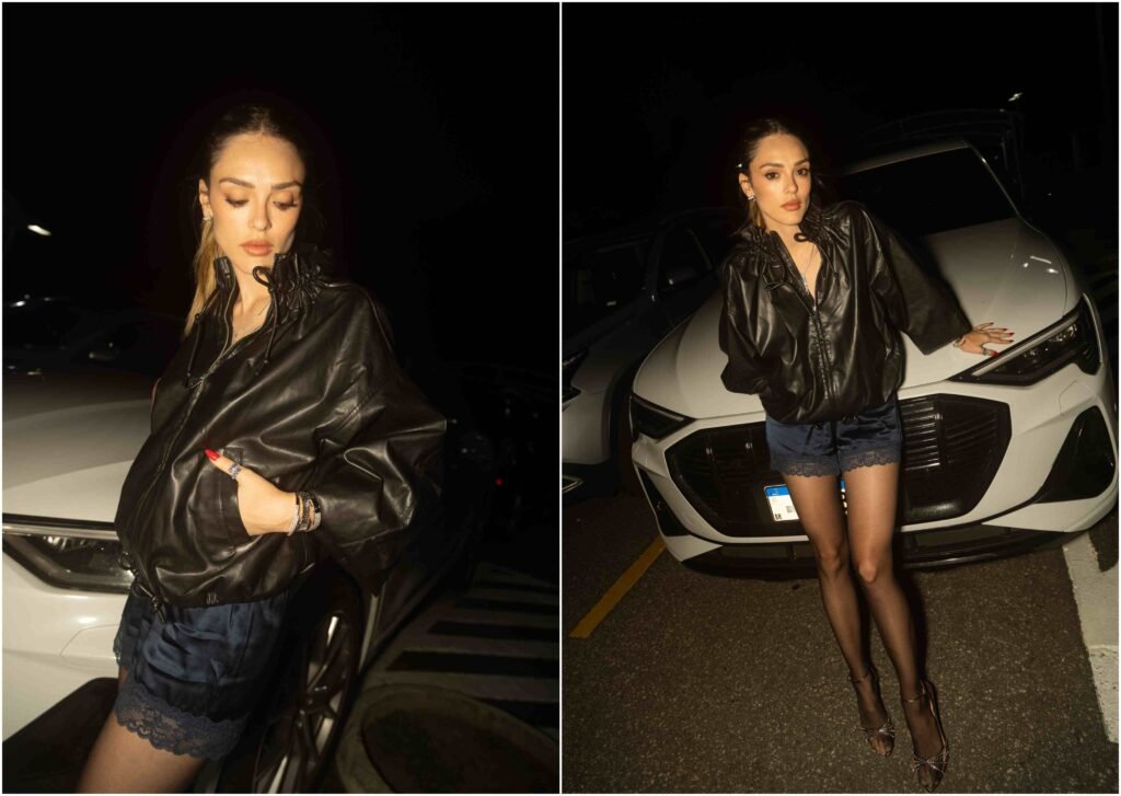 A intérprete de Naiane Sampaio no novo folhetim escolheu a jaqueta Isabel Marant, que imprime atitude ao visual, combinada aos sapatos Aquazzura e às jóias Dassa Danna, em uma composição contemporânea, feminina e marcante.