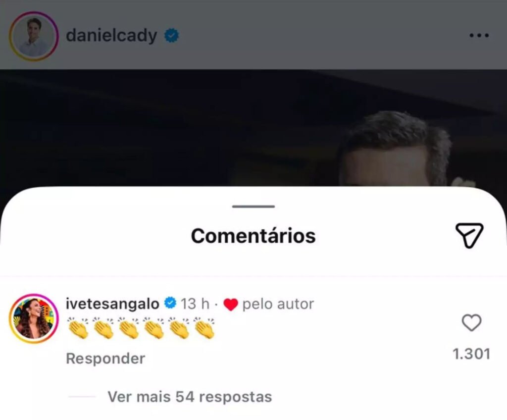 Ivete interagiu na publicação. Nos comentários, a cantora comemorou a novidade do ex-marido com emojis de palmas. Daniel, por sua vez, retribuiu a interação curtindo com um coração.