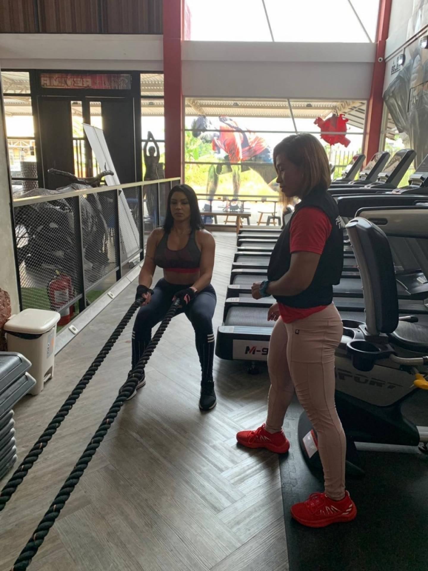 Jenny malha com a personal trailer Astrid Coach, que também é campeã de fisiculturismo na Indonésia. “É ótimo ser treinadora da Jenny. Ela é uma mulher muito talentosa, uma modelo fitness que se exercita seriamente sem desistir. Eu nunca tive uma aluna como ela, extraordinária. Espero que quando ela voltar ao seu país consiga realmente alcançar o que deseja”, disse a personal trainer.