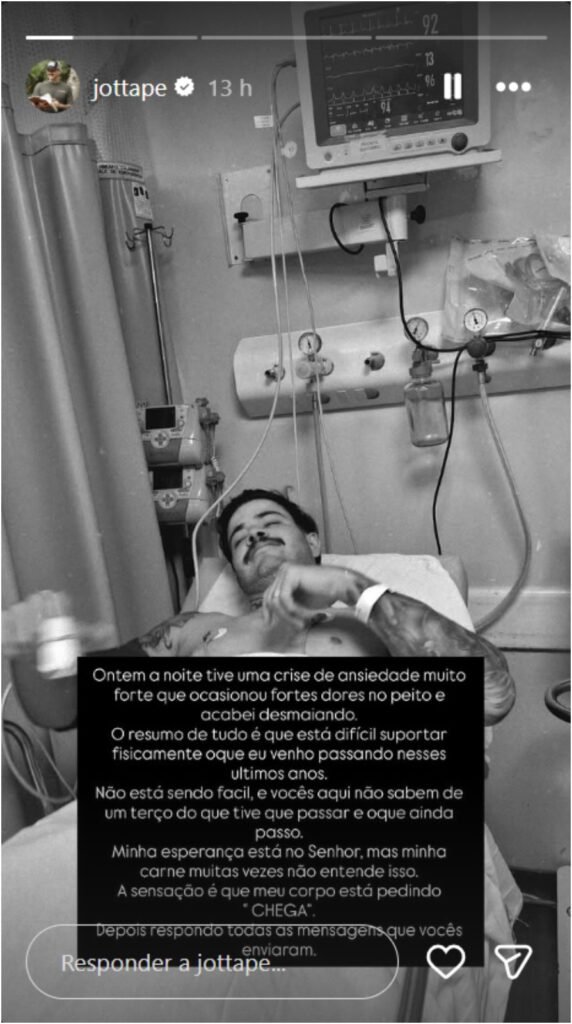 “O resumo de tudo é que está difícil suportar fisicamente o que eu venho passando”, escreveu ele em um story no Instagram. “Não está sendo fácil, e vocês aqui não sabem de um terço do que tive que passar e o que ainda passo.”