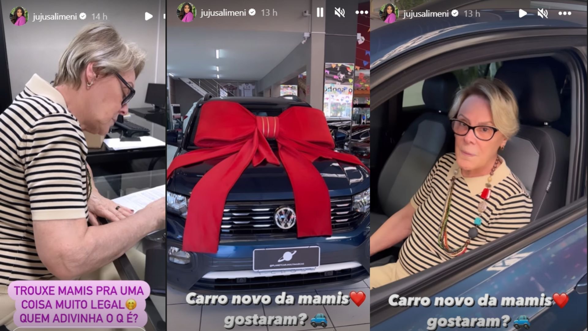Na última segunda-feira (26), Juju Salimeni mostrou que não brinca quando o assunto é presentear. Nos stories do Instagram, a musa fitness compartilhou o presente que deu para sua mãe, Dora Salimeni: um carro.