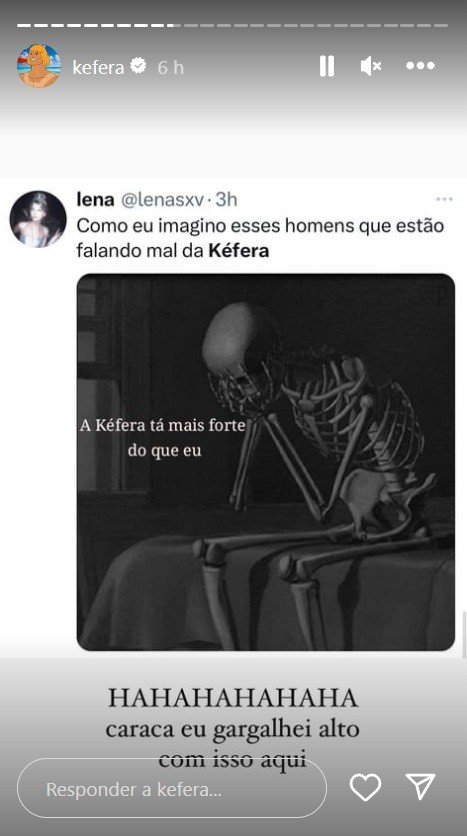 Em uma sequência de vídeos publicados nos Stories de seu Instagram, Kéfera falou sobre o assunto, nesta quarta-feira, 3, e revelou surpresa com a repercussão.