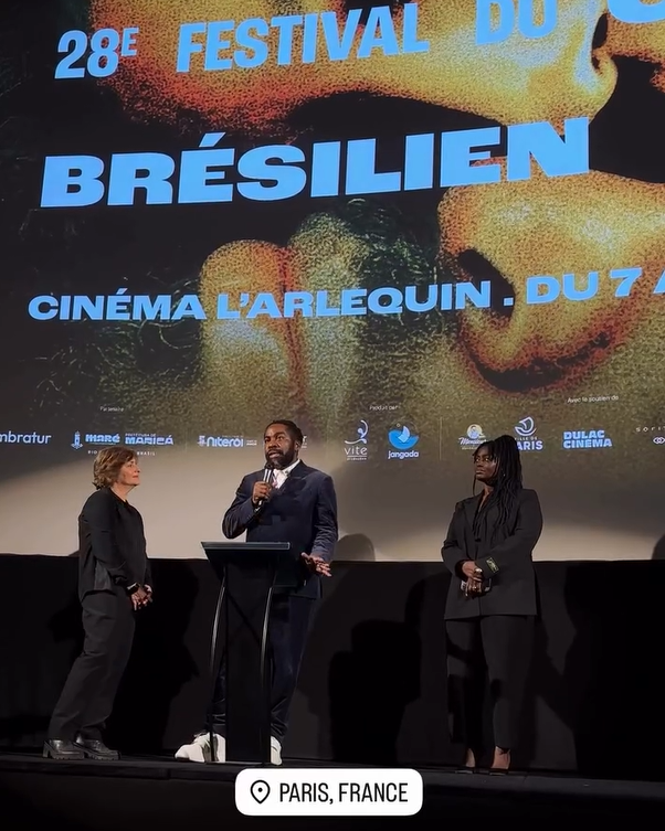 Lázaro Ramos sobe no palco para receber homenagem em Festival de Cinema Brasileiro de Paris – Reprodução/Instagram
