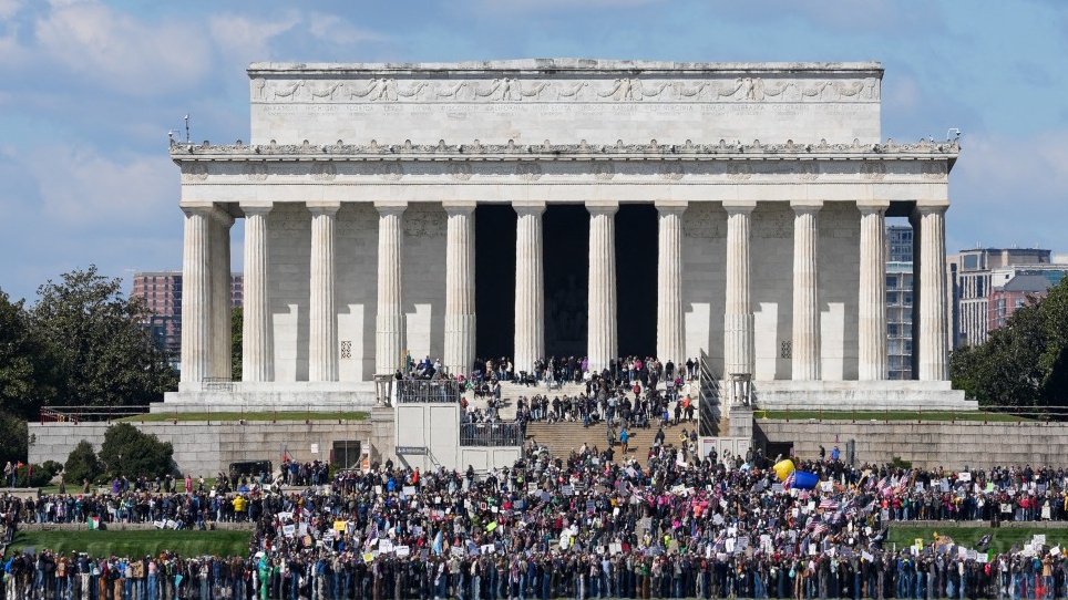 Manifestantes ocupam o Lincoln Memorial, em Washington D.C.