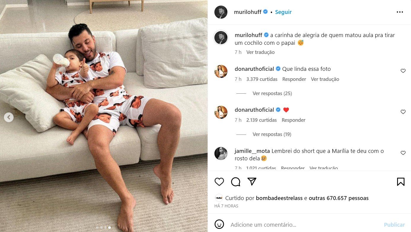 “Que linda essa foto”, falou dona Ruth, mãe de Marília e vó de Léo, completando com um emoji de coração. “Leozinho tá crescendo muito rápido”, disse uma fã. Mensagens como “Lindos” e emojis de coração foram os comentários mais enviados pelos seguidores.