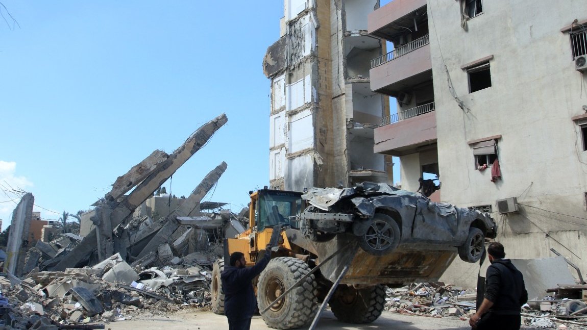 Ruínas na cidade de Sidon, Líbano, após ataques de Israel