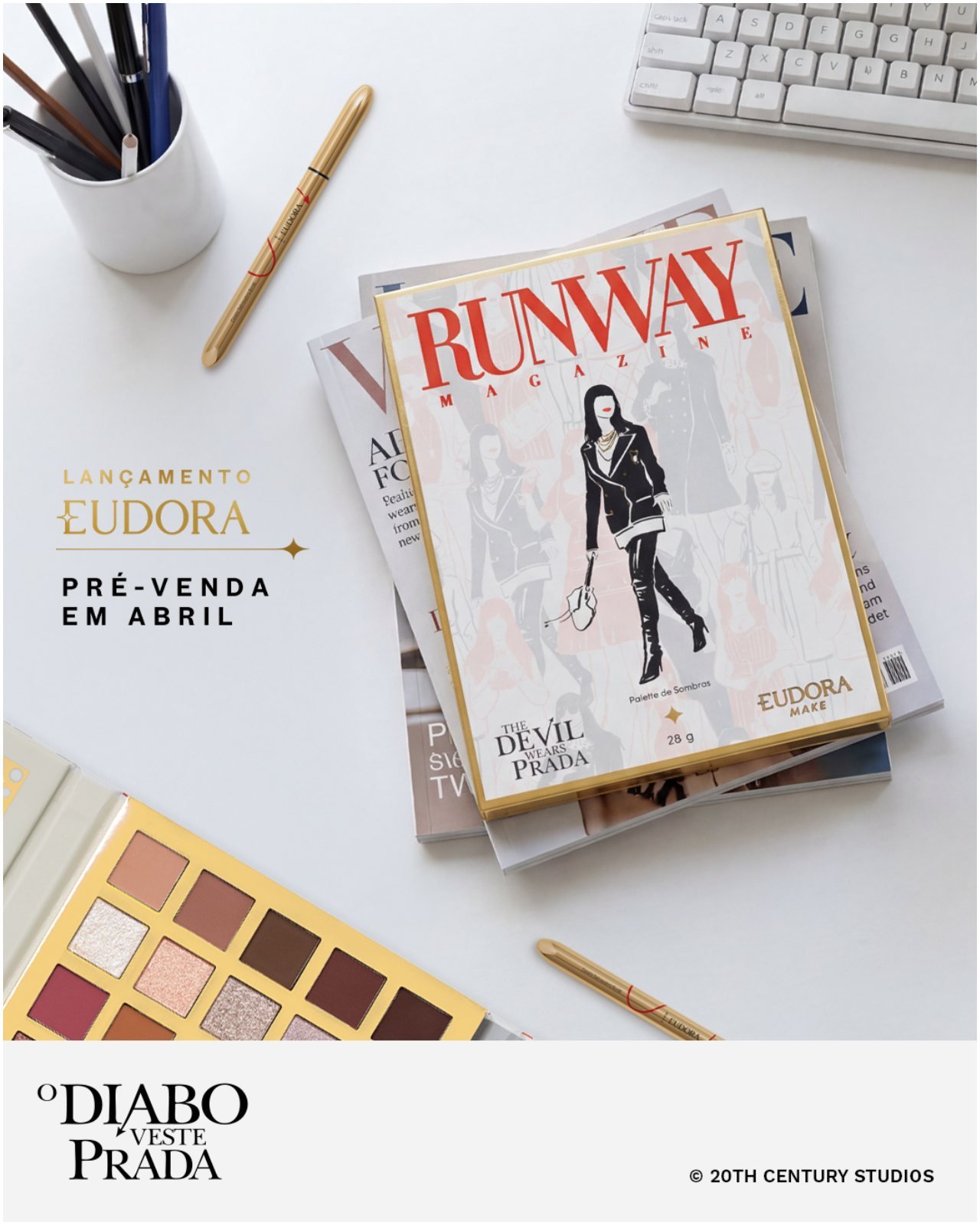 Eudora desenha uma estratégia de lançamento atrelada à chegada de O Diabo Veste Prada 2 nos cinemas, em 30 de abril. A pré-venda no e-commerce acontece de 30 de abril a 4 de maio. Já o lançamento oficial ocorre em 11 de maio, no site, nas lojas e por meio de revendedores da marca.