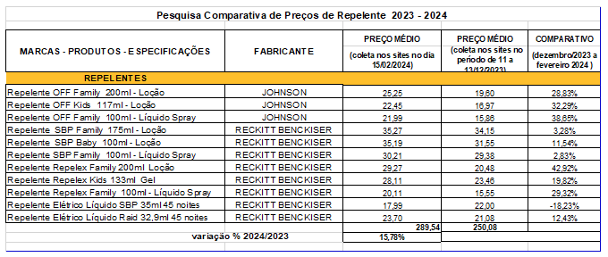 O Procon-SP realizou sua primeira consulta de preços de repelentes contra insetos de 2024, realizada para contribuir com os esforços de prevenção à dengue por meio de informações referenciais que auxiliem o consumidor no planejamento de seus gastos.