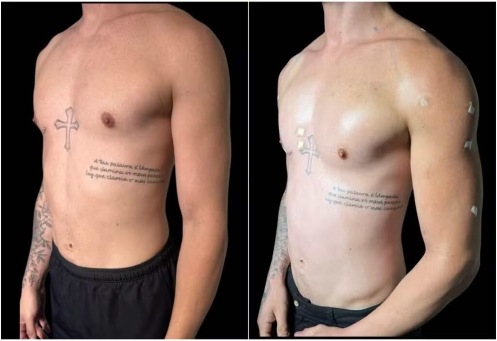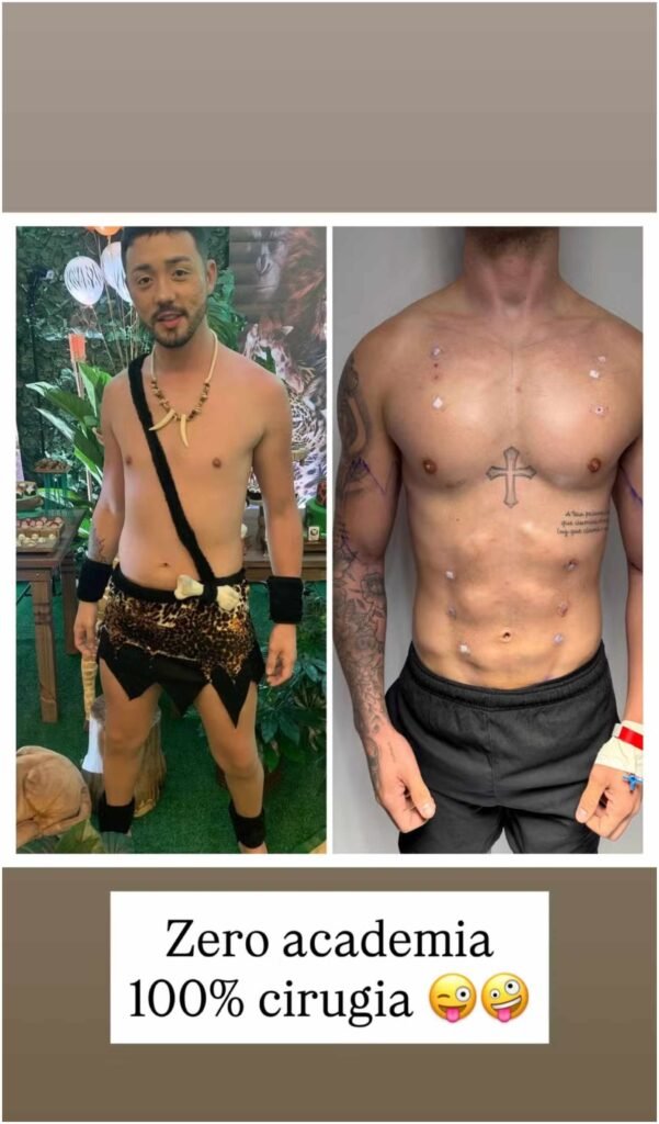 Nas imagens publicadas, o influenciador exibe aparência mais torneada, resultado de um preenchimento no abdômen, além de intervenções no peitoral, bíceps, tríceps e trapézio, com uso de um bioestimulador que corrige assimetrias. Segundo o médico responsável pelo tratamento, o produto tem ação progressiva.