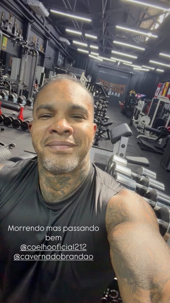 Em seu stories desta quinta-feira, 8, o pagodeiro demonstrou que já está firme na academia: “Morrendo mas passado bem”, legendou, marcando Lucas.
