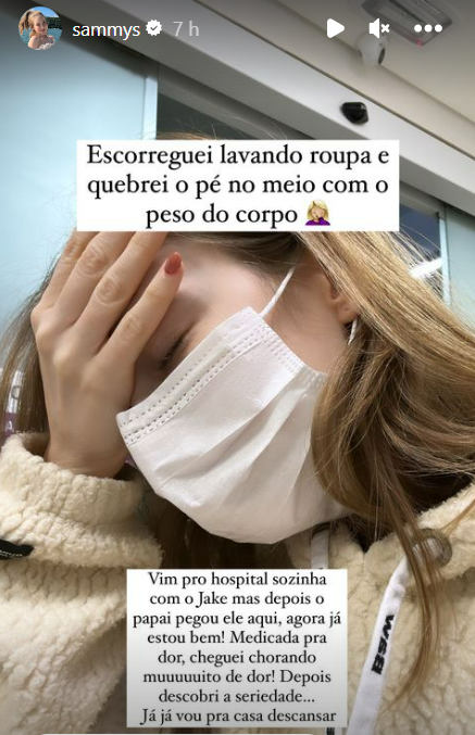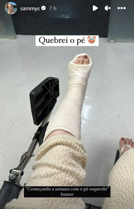 Sammy deu um susto em seus seguidores na última segunda-feira (29). No Instagram, a influenciadora compartilhou que quebrou o pé após um acidente doméstico.