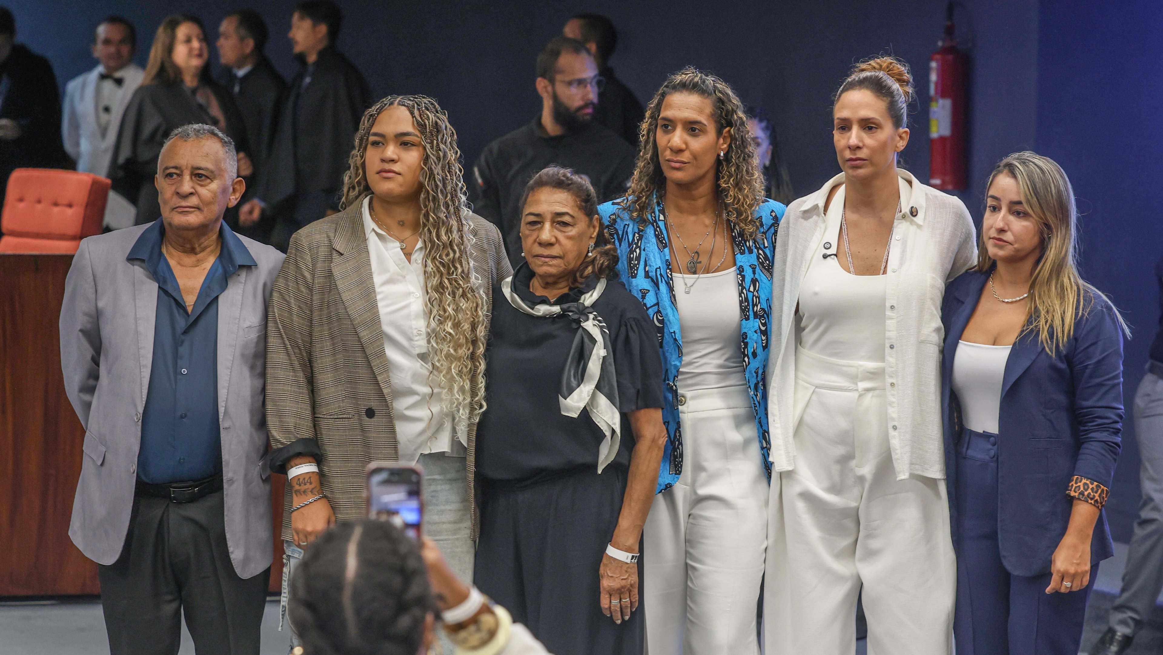 Familiares posam para foto antes do Inicio do julgamento no STF dos mandantes do assassinato da ex-vereadora, Marielle Franco (Foto: Valter Campanato/Ag. Brasil)