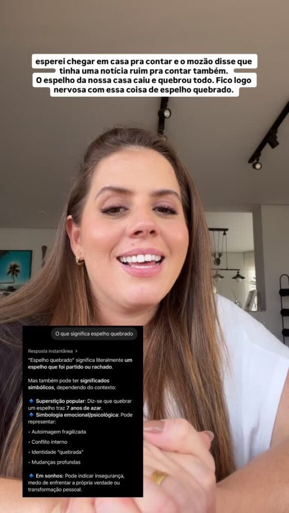 “Quando vem coisa ruim, vem uma atrás da outra. Eu fico logo nervosa, essa coisa de espelho tem todo um significado… tantos anos de azar, falta de sorte. Vou ver se tem algum significado positivo pelo menos”, finalizou.