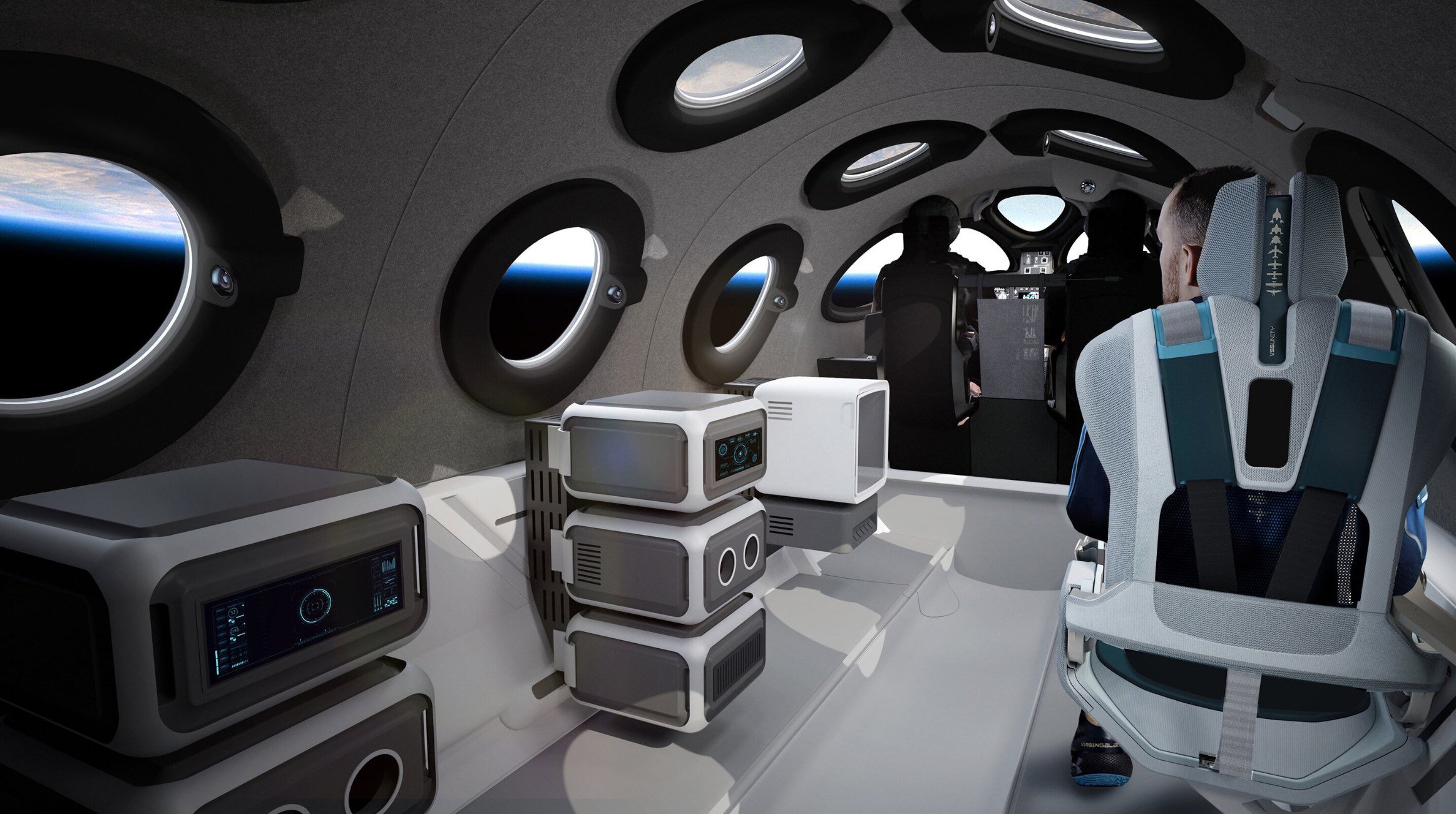 São 6 passageiros e dois pilotos. 17 janelas. As cadeiras possuem quatro tamanhos intercambiáveis para melhor se adequar aos passageiros, o que é importante, pois as altas forças G afetam os passageiros ao sair e entrar na atmosfera. Quando ela chega ao espaço, os assentos são projetados para desafivelar e retrair os cintos de segurança e inclinar para uma posição plana que permite aos passageiros ter o máximo de espaço para se mover ao redor da cabine. A cabine também possui um espelho do chão ao teto para que você possa se ver em zero-g e 16 câmeras que filmas a experiência.