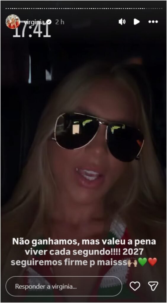 “Não ganhamos, mas valeu a pena viver cada segundo! 2027 seguiremos firme para mais”, escreveu a apresentadora ao postar as imagens nos Stories do Instagram.