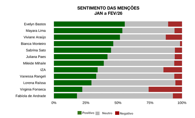 Share of voice das menções às rainhas (Janeiro e Fevereiro de 2026)